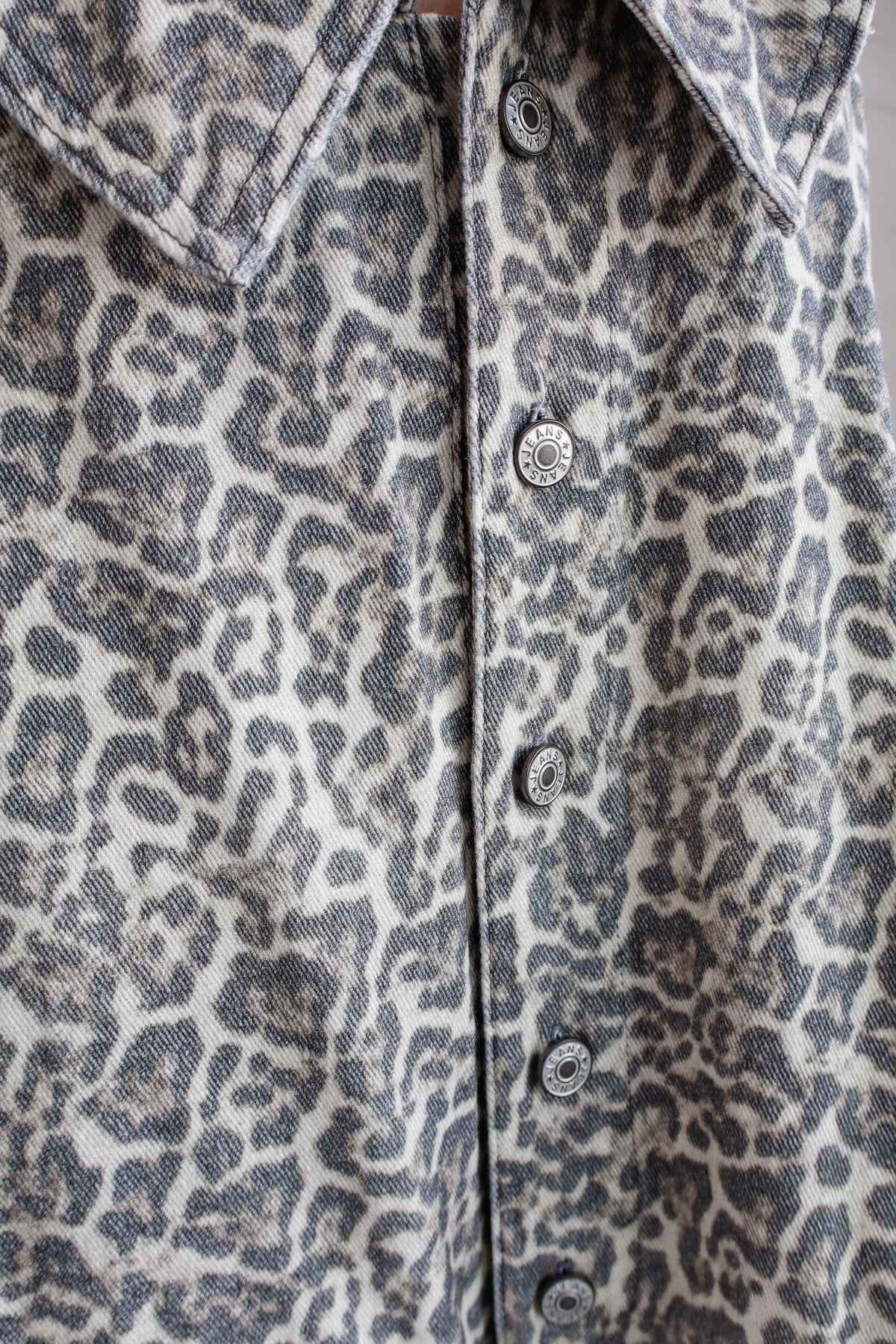 Oversized collar detailed leopard printed relaxed fit denim romper